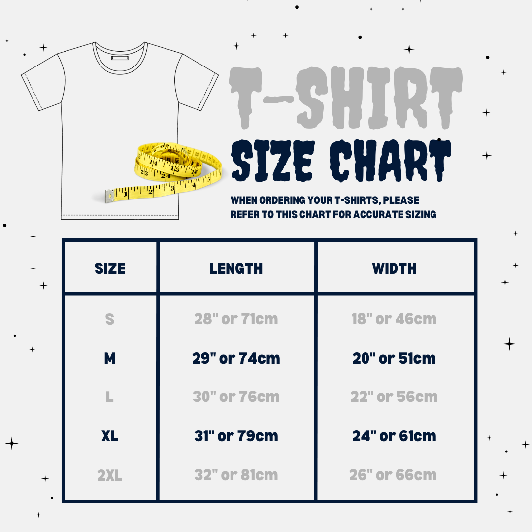 T-shirts are custom printed per order. Due to the t-shirts being custom orders, refunds are not permitted.